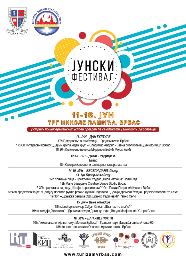Првим програмима у Градском музеју Културног центра Врбаса и на Тргу Николе Пашића, вечерас у Врбасу почиње Јунски фестивал.